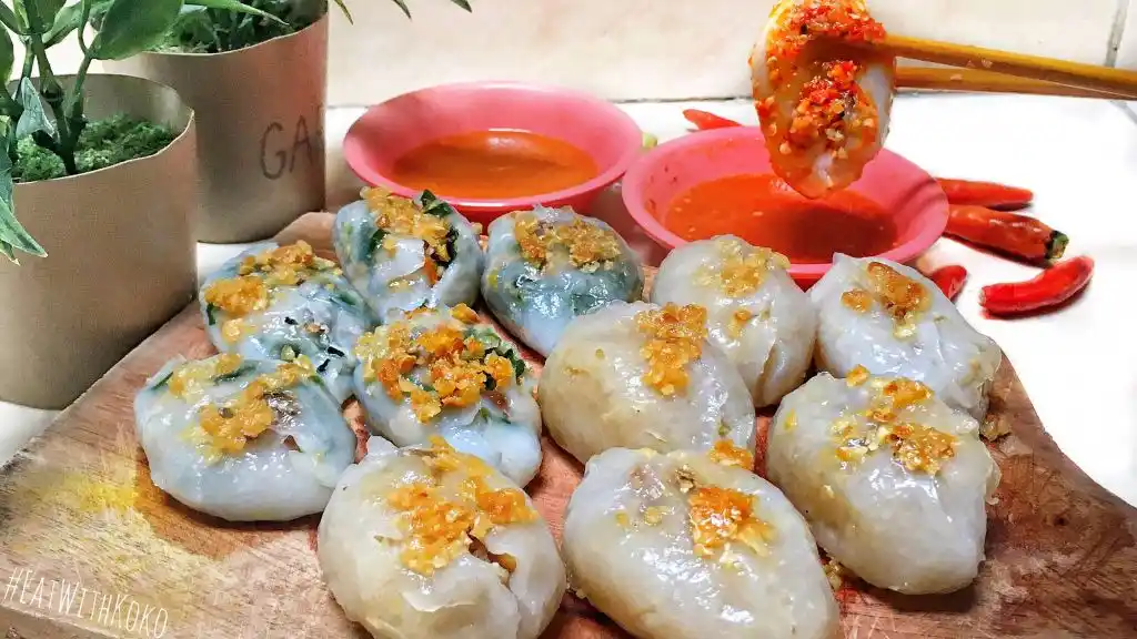 Setelah dikukus, Chai Kue disajikan dengan taburan bawang goreng yang harum dan sambal merah yang menggigit. Teksturnya lembut di luar dan gurih di dalam, menghadirkan sensasi kenyal yang pas di mulut.